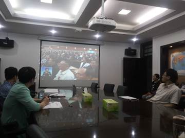 党支部书记刘书营主持会议,首先传达了邢勇书记第三次党代会上的报告《不忘初心 牢记使命 砥砺前行 为建成特色鲜明的高水平应用型理工大学而奋斗》的主要内容及意义,之后全体参会党员一同观看学习了马克思诞辰200周年习近平总书记重要讲话。