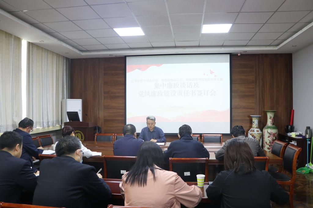 许建辉对学院领导班子进行集中廉政谈话,并与中层正职签订党风廉政建设责任书。他强调,领导干部一是要坚持学习,提升站位;二是要履职尽责,履行“一岗双责”;三是发现问题要及时纠偏;四是要严格律己,标杆示范;五是要团结协作,营造风清气正的氛围。