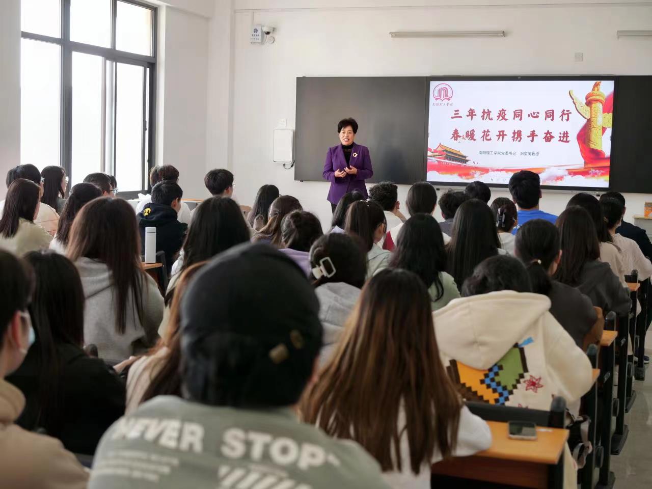 3月9日下午,校党委书记刘荣英以“三年抗疫同心同行 春暖花开携手奋进”为题,为传媒学院师生讲授2023年春季开学思政第一课。