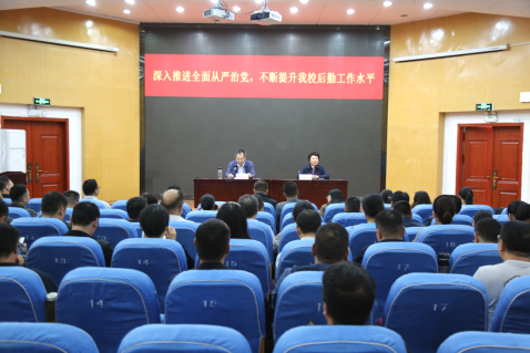 于继武以《深入推进全面从严治党,不断提升我校后勤工作水平》为题,结合学校发展实际,运用大量事例和数据,从习近平总书记关于全面从严治党的重要论述、全面从严治党的重大意义、高校后勤应如何推进全面从严治党三个方面进行讲解。