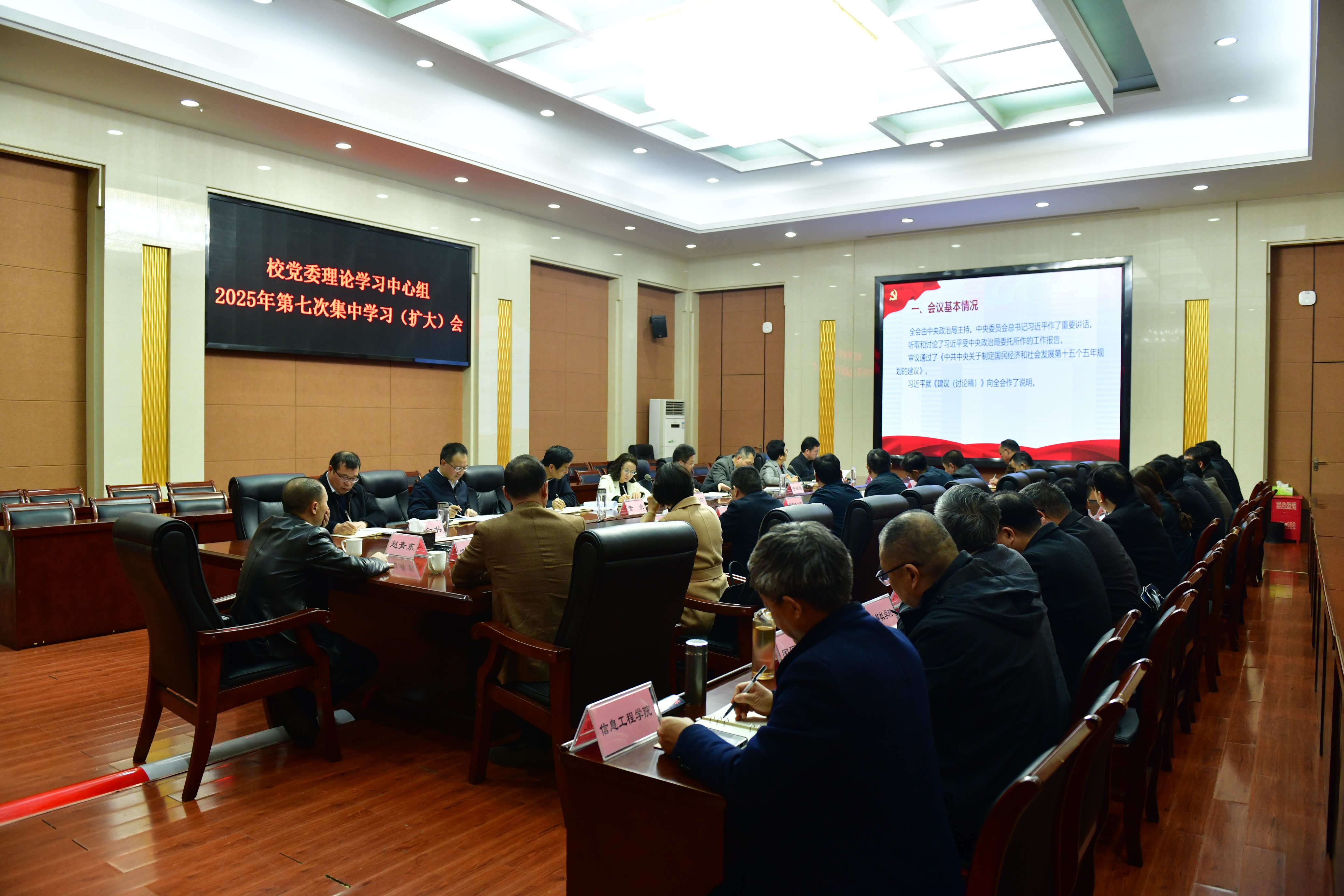 10月29日下午,校党委书记张爱红主持召开校党委理论学习中心组2025年第七次集中学习(扩大)会,深入学习党的二十届四中全会精神,系统安排部署学校学习宣传贯彻落实工作。校长郝好山参加学习,校党委理论学习中心组成员、各直属党组织书记、相关处室负责人参加。