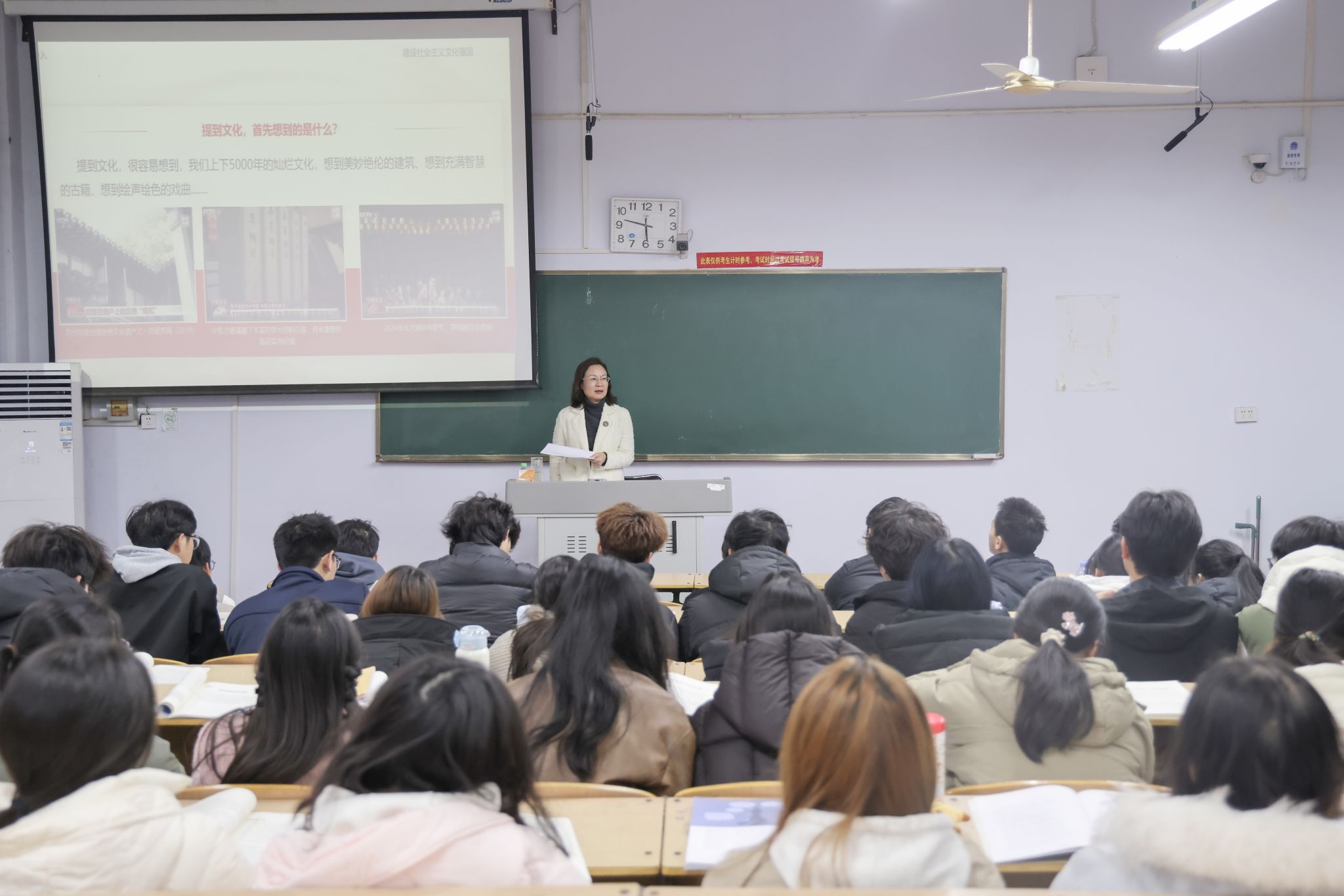 11 月 25 日上午,校党委书记张爱红走进3号教学楼103教室,为 25级化工、应化1班(合作)的本科生讲授“建设社会主义文化强国”专题思政课,将理论宣讲与思政育人深度融合,为青年学子厚植文化自信与使命担当。