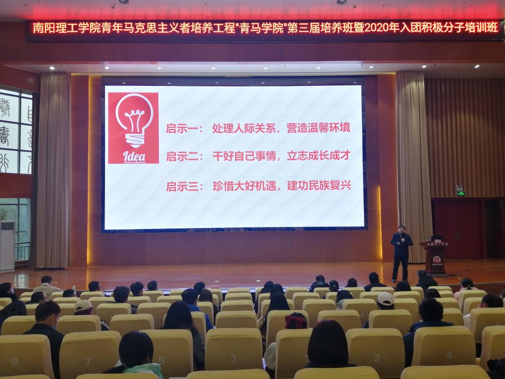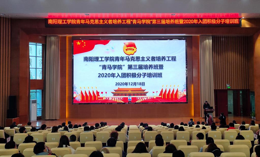 12月18日下午,校青年马克思主义者培养工程“青马学院”第三届培养班暨2020年入团积极分子培训班在第三学术报告厅举办。校长安士伟出席并授课,校团委全体同志,教学院团委书记、副书记,“青马学院”第三届培养班学员,各教学院“青马学堂”学员代表和2020年入团积极分子参加培训。
