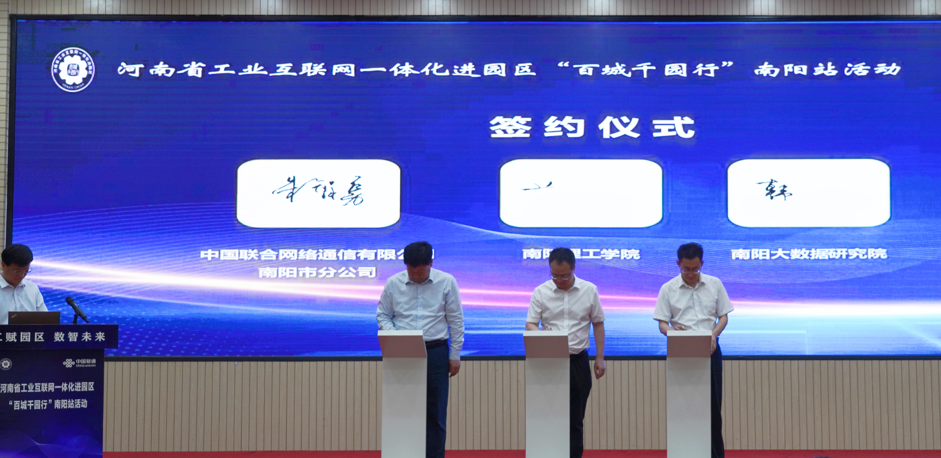 此次签约代表着我校与中国联通南阳分公司合作的进一步加强,双方将充分发挥各自优势,整合资源,在数字化转型发展、工业互联网、智慧校园等领域进行深度合作,为南阳副中心城市建设贡献“数智智慧”。